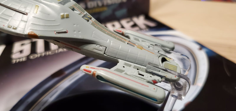 The model has some weight to it but it isn’t as heavy as some of the other ones and none of these ships are in scale to each other. Excelsior is a tiny model in comparison even though it is a beast of a ship. The detail is overall very good. The paint work is excellent. So the only part that feels a little flat is the underside shuttle which could do with a little more definition. Otherwise this is a excellent model all around and if you are a fan of Voyager then this will look very pretty on your desk or in a cabinet.