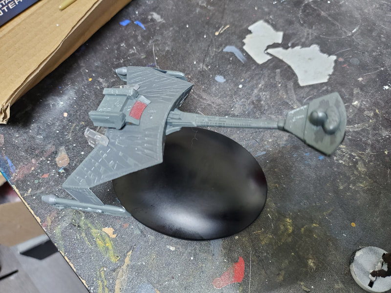 The model of the K’Tinga is really nice. A lot of it is solid metal with the engines being plastic. The stand holds the model in place but with all of the models in this series they are held in place, they are not screwed in or attached. The pro is there is no invasive way to hold it or loss of detail due to holes etc. The con is if bumped it can fall out of the stand. So keep that in mind with where you display it.